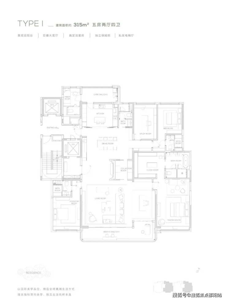 【315㎡户型】南北双阳台-独立保姆房-巨幕大宽厅-私家电梯厅
