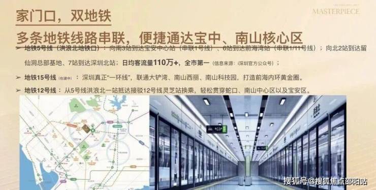 :步行约100 米至 5 号线洪浪北站 D 口,7 站达企鹅岛、10 站到前海;在建15 号线交汇,未来双地铁通勤更高效。