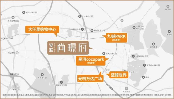 项目周边商业配套面积超过15万㎡,如光明广场、大仟里购物中心、万达广场、天虹商场等多所商场环绕,竭力满足生活所需