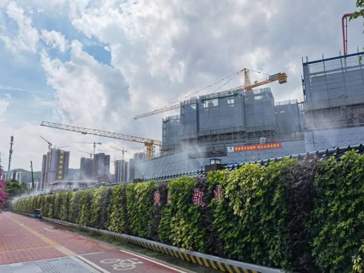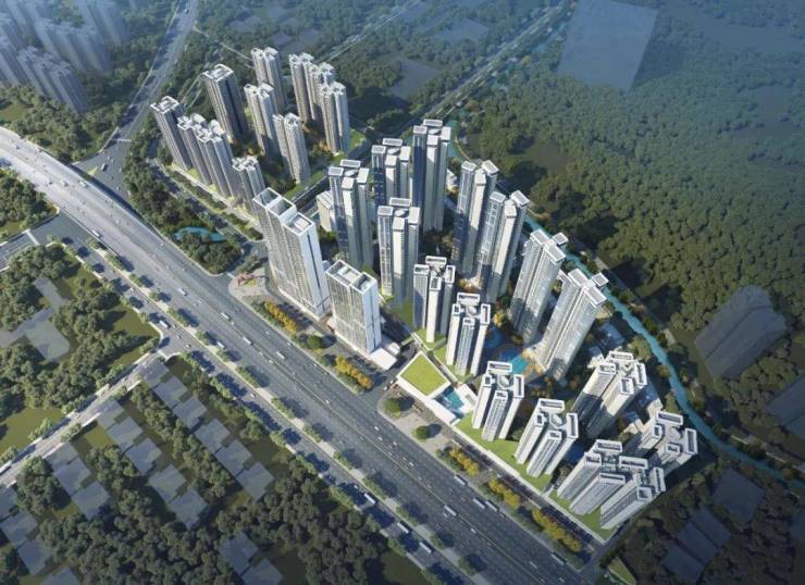 而保利翔龙天汇自身,南侧就是绵延山体和一线河流。从楼盘施工地望过去,就是大片的绿色山林。