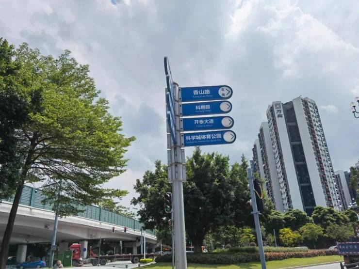目前,从项目出来,转个小弯,就可以看到广州科学城体育公园的指示牌。