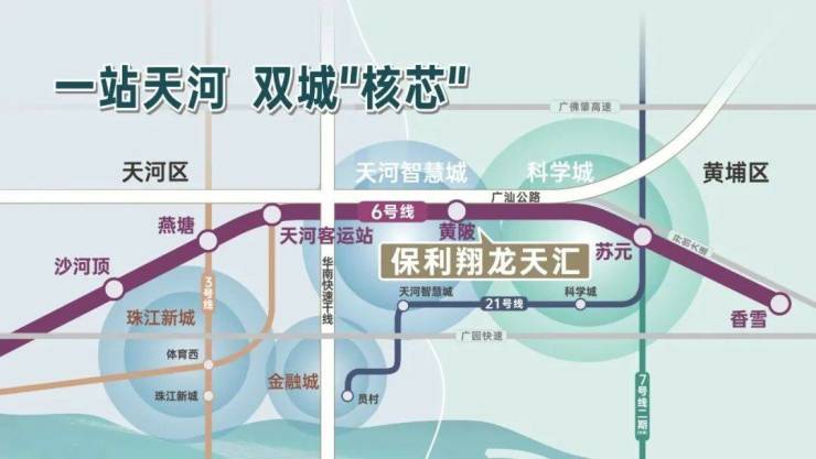 而与科学城和天河智慧城仅有5公里距离的保利翔龙天汇,就处于两台强力引擎的交汇处,坐享产业发展带动城市配套和土地价值提升的红利。更直接承接天河和黄埔大量高净值人群居住需求的外溢。