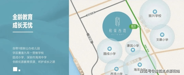 项目自带9班制公办幼儿园,学区覆盖九年一贯制固戍小学、深圳市海湾中学。