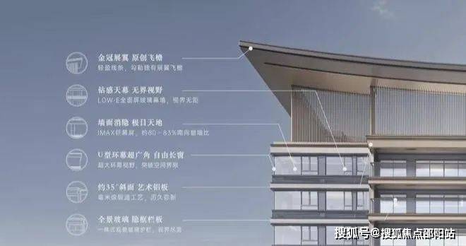 外立面以高技法演绎高规格型材,采用原创冠云屏,打造高级优雅的公建化立面。实现的是横向舒展的全面屏自由长窗,南面窗墙比高达80-83%,以及大约35米的采光面,超大环幕视野,突破空间界限。