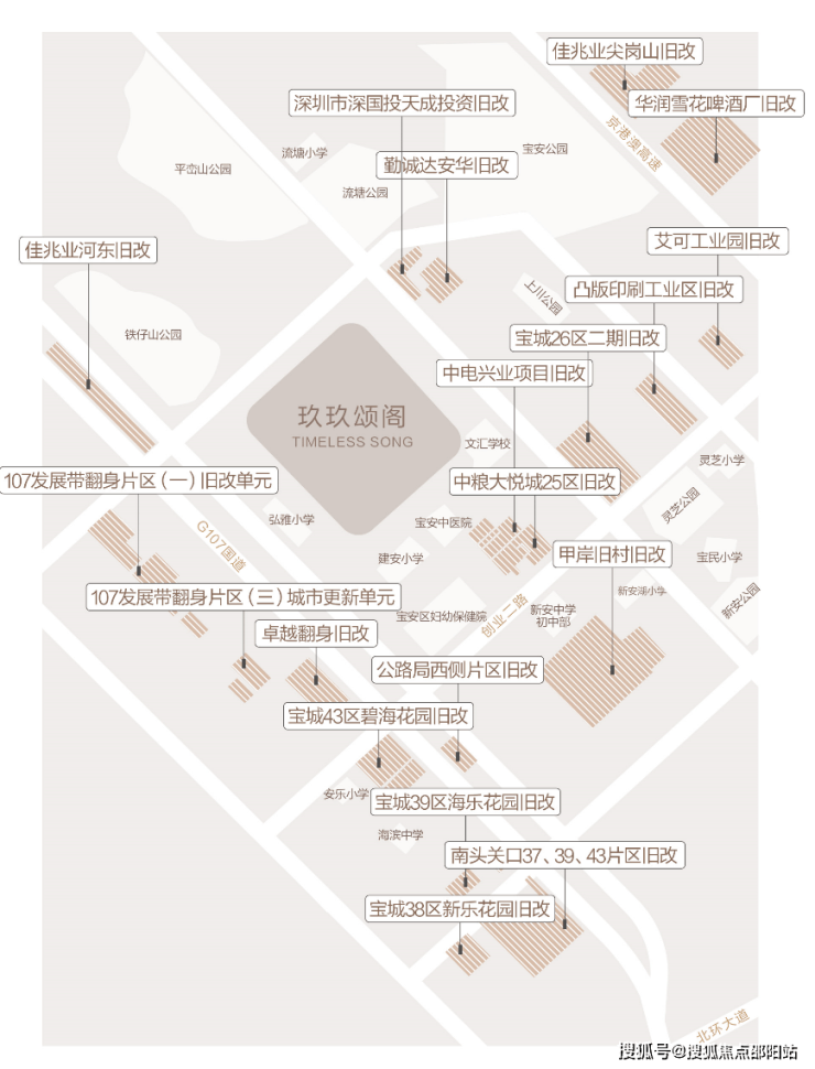 区域内目前正进行着大规模的旧改,旧改体量超过1000万平米,其中超过400万平米的城市综合体,100万平的商业,项目2km内汇聚8个旧改,焕新片区人居生活,过去5年新安片区房价涨幅高达111%,跑赢了宝中、前海、后海等热点片区,新安的房价天花板远不止如此,前景十分可期。