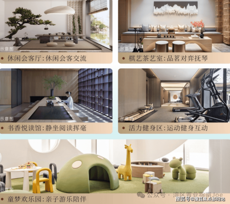 社区内部规划了现代禅意风格园林,包含 400 米环形健康漫步道与 12 大主题景观,同时设置五大主题架空层,分别为活力健身区、休闲会客厅、棋艺茶艺室、书香悦读馆与童梦欢乐园,覆盖不同年龄段居民的休闲需求。