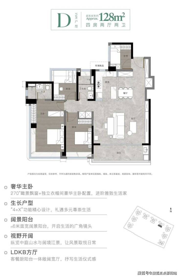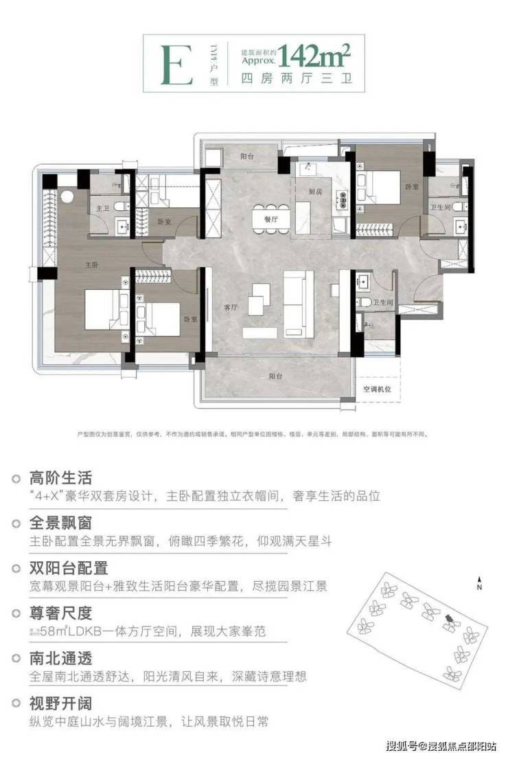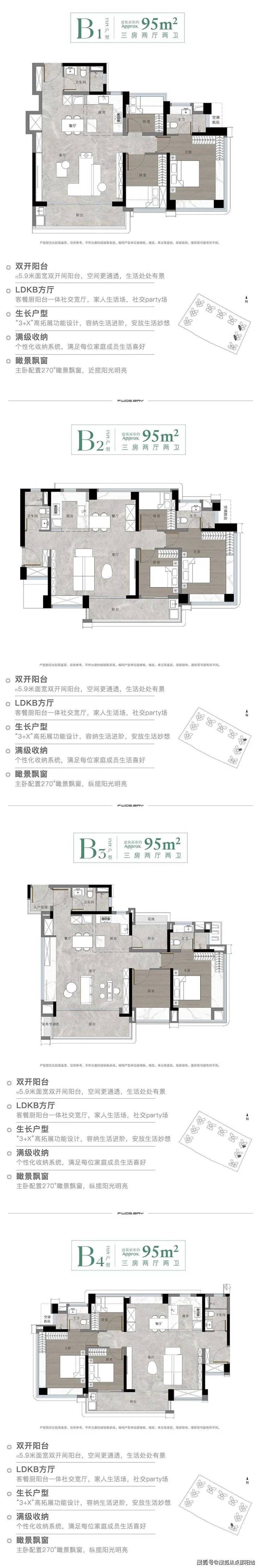 所有户型均为南向设计,使用率超100%,并配备大阳台或宽景阳台