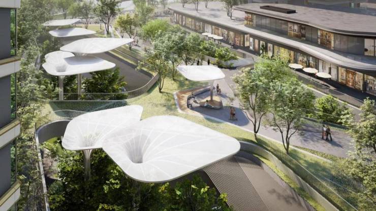 生态中轴绿廊,不仅会串联着项目的一二期住宅,更将公园、会所、艺术中心、建面约1万平的下沉式主题商业连接成一个整体。