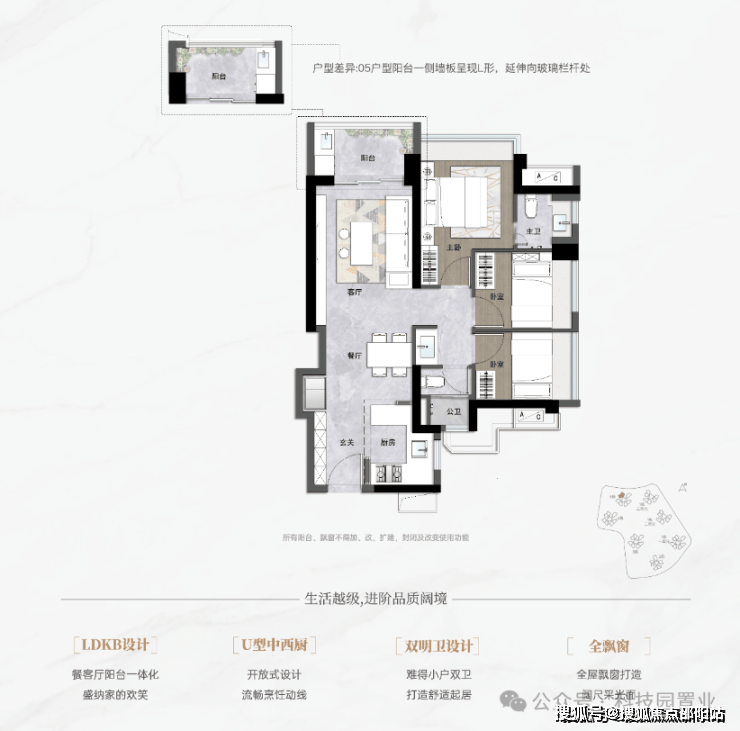 1、全飘窗打造‼保留一期同等大尺寸阳台