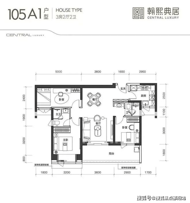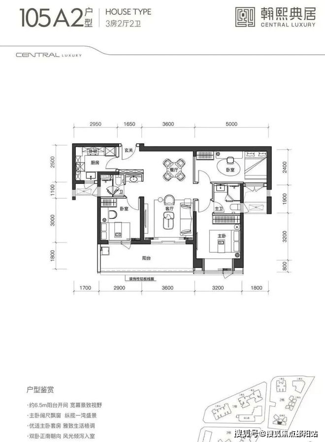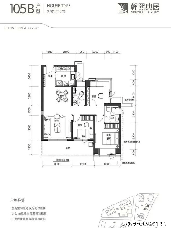 建面约105㎡的3房2厅2卫