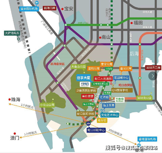 交通枢纽:前海交通枢纽(在建)、13号线直达西丽高铁站,深圳北站;11号线直达宝安机场;深圳湾口岸;