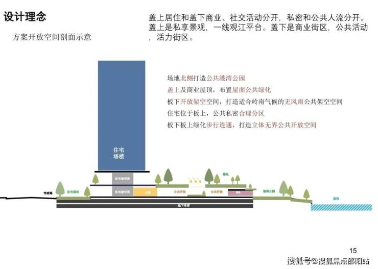 通过盖板设计造就的盖上私密园林、盖下滨江商业带,叠加270°环幕滨江会所和公共港湾公园,真的很city了。