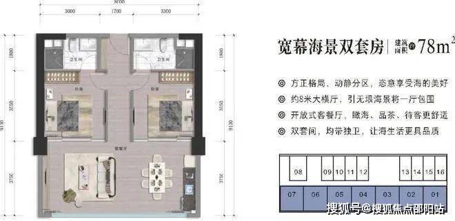 湾区畅销理想住所约78-82㎡ 一线海景双套房现房49.8万起/套 楼层任选准现房65万起/套 年底交付,春节入住!◎8米超大横厅 ◎ 双套房设计 ◎格局方正