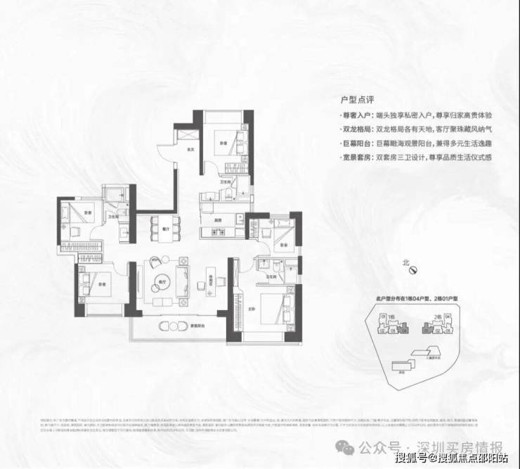 主力户型分析:项目主力产品为建面约300-1000㎡的大平层及顶层复式。全系产品采用精装交付,由全球顶尖设计团队主理。其中,约300㎡户型为3-4房4卫,采用LDKB一体化设计,主卧套房尺度阔绰;约500㎡户型为4-5房5卫,拥有独立家政间、中西双厨及环绕式景观阳台;约1000㎡顶层复式为楼王单位,整层一户,配备私家电梯厅、空中泳池、全景天台及270度无边际海景、城景、公园景观。