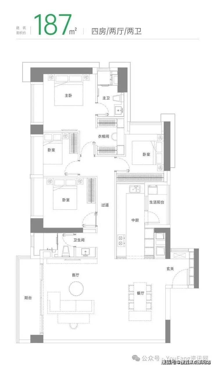 建筑面积约187㎡户型
