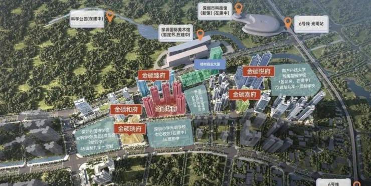 金硕悦府所在的光明中心区,定位“宜居、舒适、休闲、运动”,是光明的中央居住区,是科学家之家,未来有很多科学家在此居住。不过板块起步比较晚,现在还在大力建设中。