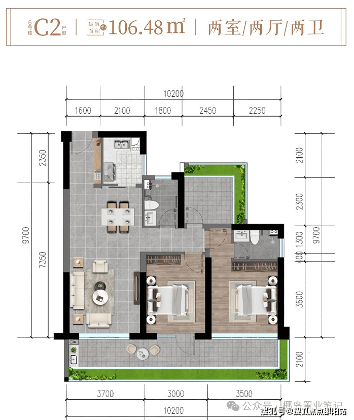 ✨5#楼C2户型约106㎡两房两厅两卫