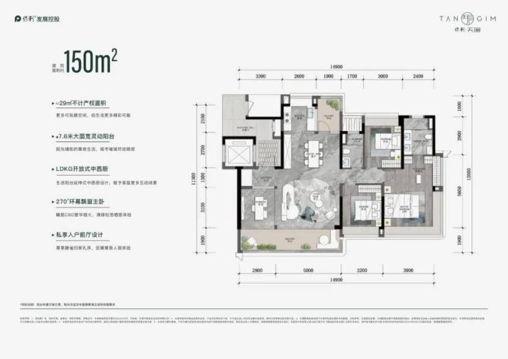 若有更进阶的生活所需,可以考虑建面约150㎡户型。