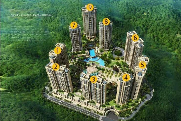 小区依山而建,拾级而上,围合式纯板楼,双泳池,七层车库,11米超豪华五星级大堂