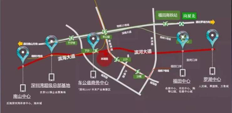 交通优势:项目楼下就是地铁7、9号线上沙和下沙地铁站,去往超总、后海、香蜜湖、罗湖、龙华等地方都是非常便利。