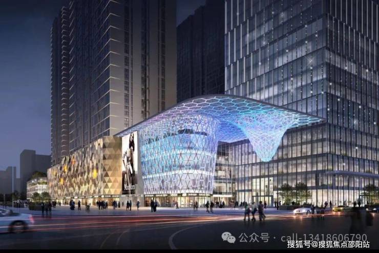 悬挑约16米的水滴造型,演绎自然灵动,独特、大小不等的六边形设计,与城市光影律动,呈现不同光韵和色彩,犹如璀璨迷人的“万花筒”视觉盛宴,筑造城市建筑美学新范本