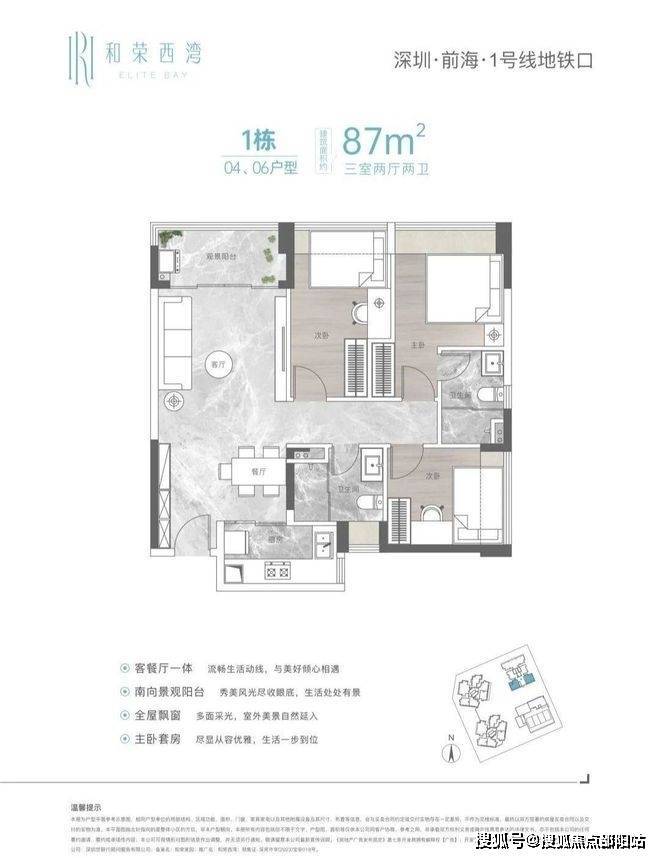 小区每个户型均做到全屋飘窗,使用率高达81%。其主力建面约87-88㎡ 3房2厅2卫,大部分做到了全南向采光,强调住房本身的宜居性的同时兼顾功能与美感。