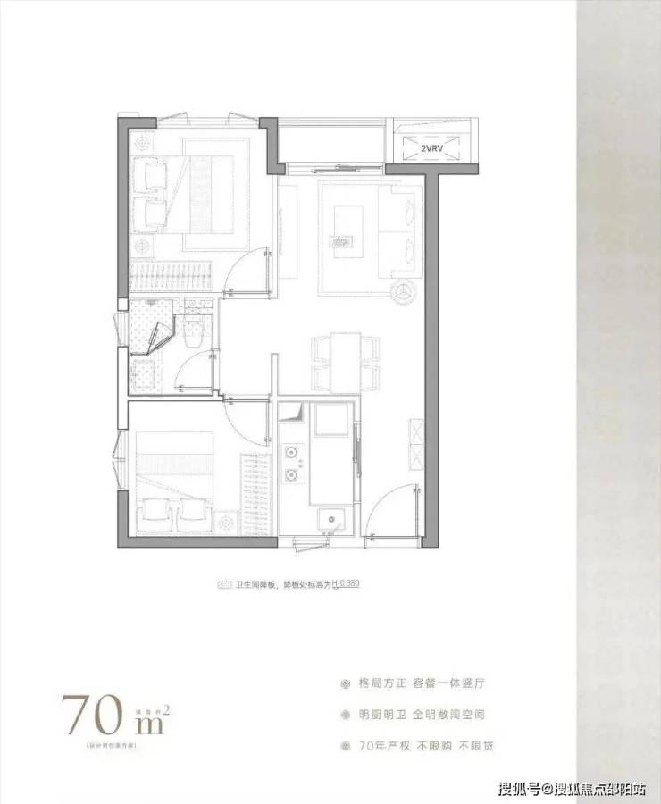 建面约70㎡,标准竖厅格局,明厨明卫,贴近住宅家庭生活需求;每个功能空间尺度都很开阔,居住体验更好,可以作为核心区住宅的“小户型平替”。预计租金水平约9000元/月。