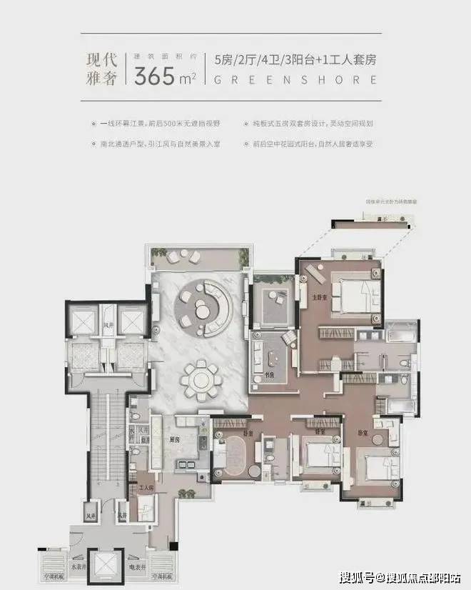 约365㎡5房双套房|2厅|4卫|3阳台+1工人套房