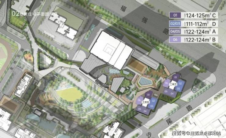 02地块有8层的商业,共约13万平,与3号地块还有约8500平的绿地公园相连接。规划了1栋写字楼和2栋住宅,第9层为空中花园。