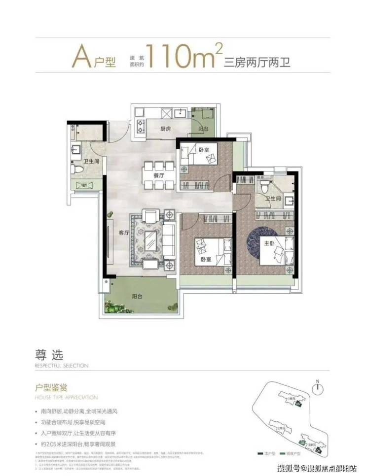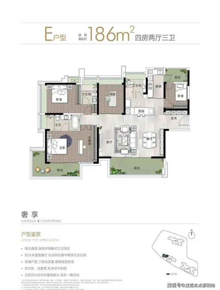 主力户型包括建面约90平方米和110平方米的A、B户型,均配备全尺寸飘窗/转角飘窗及宽敞阳台,充分利用自然景观资源。此外,特别设置了建面约153平方米和186平方米的大户型,位于一单元和二单元末端,独享中山公园的景观资源。