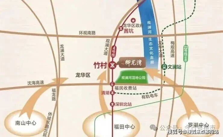 御龙湾西园,位于龙华区福城街道观澜大道与翠幽路交汇处,下楼便是龙华4号线竹村站,是观澜方面进入龙华区的首站,交通区位相当优越。