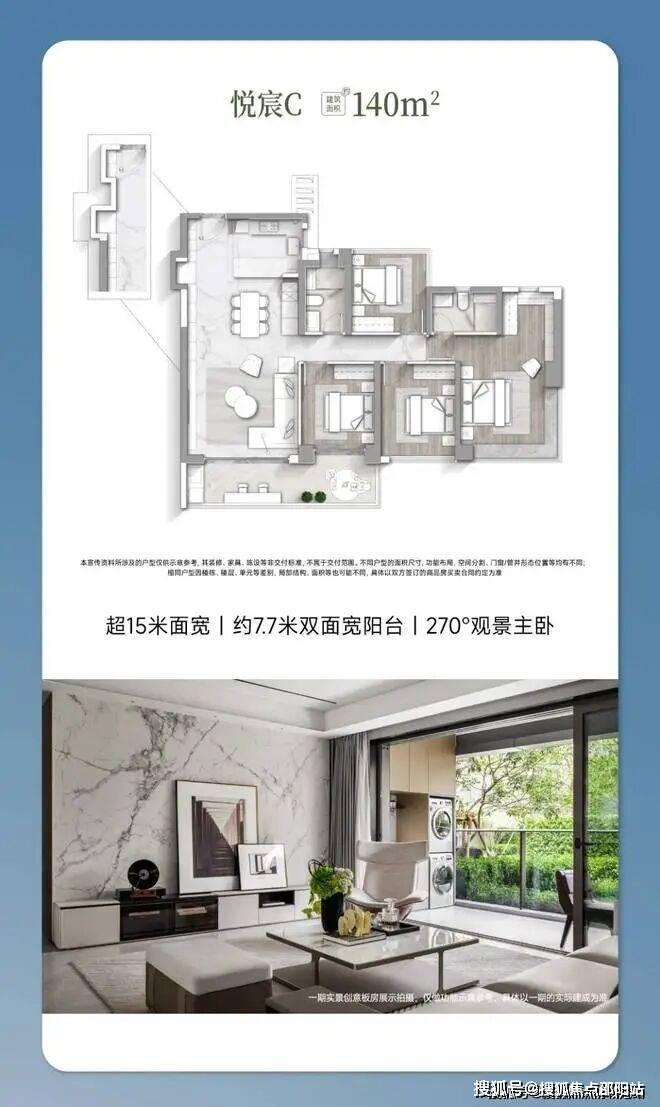 :二期主推140㎡悦宸户型(四开间朝南),剩余30席臻稀房源。
