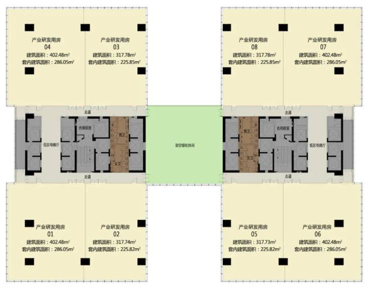 ◎标准层:约1500㎡,4个产权单元,适合企业小总部