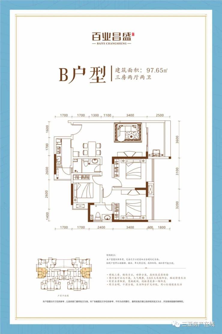 B户型 97.65㎡ 三房两厅两卫