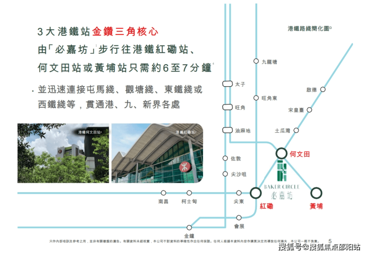 三大港鐵站金鑽三角核心由「必嘉坊 」步行往港鐵紅磡站、 何文田站或黃埔站只需 約6 至 7 分 鐘,並迅速連接屯馬綫、觀塘綫、東鐵綫或西鐵綫等,貫通港、九、新界各處。