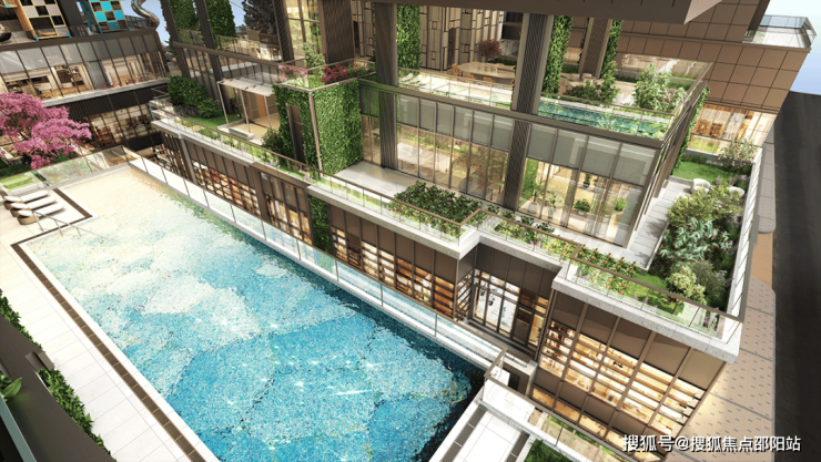 迎汇主要分为西北和东南两个方向,西北方向以內园泳池景和曦汇楼景为主,东南方向则是越过黄埔街后望向未来必嘉坊其他期数楼景。