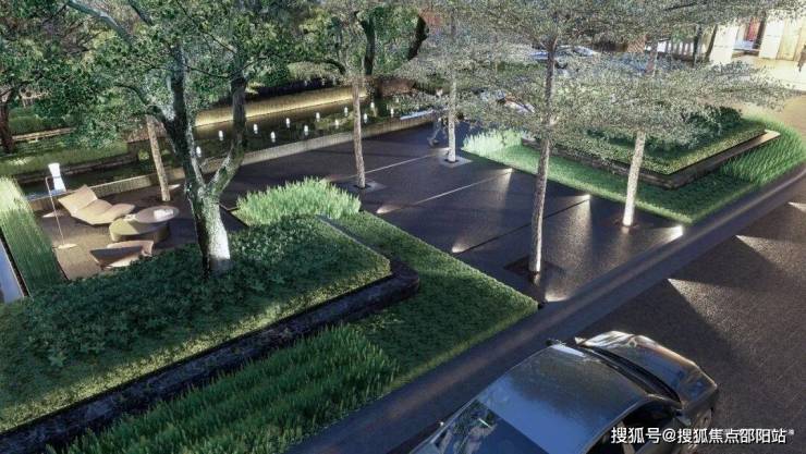:奥雅团队打造“流动的绿洲”艺术花园,一层设置约2000㎡环岛花园,二层打造1.2万㎡私享空中园林,通过镜面水景、雨水花园等设计,将大沙河生态长廊的绿意延伸至社区内部。