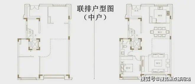 上叠,建面约240㎡,独立入户,首层是独立会客厅和长辈房,二层是三间卧室。