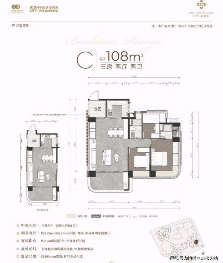 结合前海片区的定位和市场需求,预计将以改善型新规大户型为主,瞄准对前海发展潜力看好的改善型客群和资产配置者。4月9日实体样板房开放。