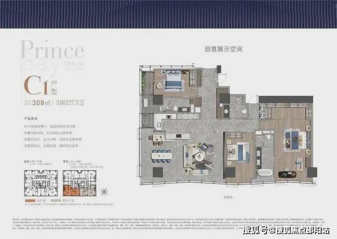 项目打造主力建面约308-415㎡纯粹品质公寓共191席,顶层为建面约1280㎡山海大宅。
