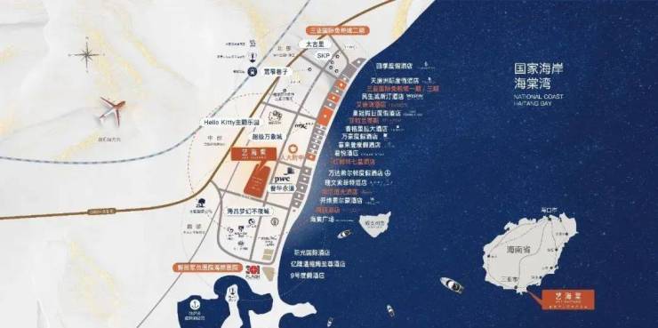 【娱乐】湾区内有亚特兰蒂斯水上乐园、海昌梦幻海洋不夜城、HELLO KITTY主题乐园(规划中)、亚洲一流的游艇休闲基地--铁炉港、国际锦标赛等级的高尔夫球场——三亚神泉国际高尔夫俱乐部、三亚海棠湾海中海高尔夫球会、五星级IMAX——万达娱乐影城、“神州第一泉”—珠江南田温泉、蜈支洲岛、海棠68国际美食街、红树林一千零一夜商街等,另外各项国际的大型文娱活动绽放海棠湾:艺海棠三亚国际艺术季,ISY三亚国际音乐节,海南岛国际电影节, FE电动方程式等齐力打造海棠湾这个享乐胜地。