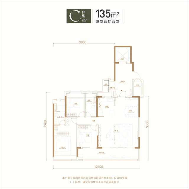 建面约135平方米三居室