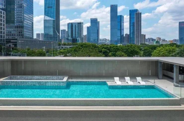 |云端泳池:承载全龄段生活意趣,一番畅游后大人们还可到一旁的“品蘭荟”水吧品味香醇特调美酒。