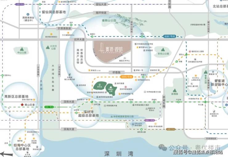 快捷交通路网,北环大道/南坪快速/侨香路/京港澳高速,20-30分钟到福田CBD、深圳北站、皇岗/福田/深圳湾三大口岸、宝安机场等,城芯而居,超享生活。