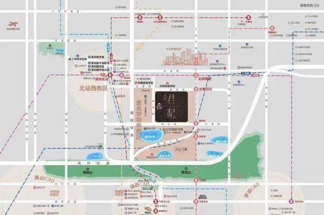 ①双枢纽(深圳北站+五和站),1小时无缝对接大湾区;五和站城际枢纽,5/10号线及规划中的深大、深惠、深广中轴城际。