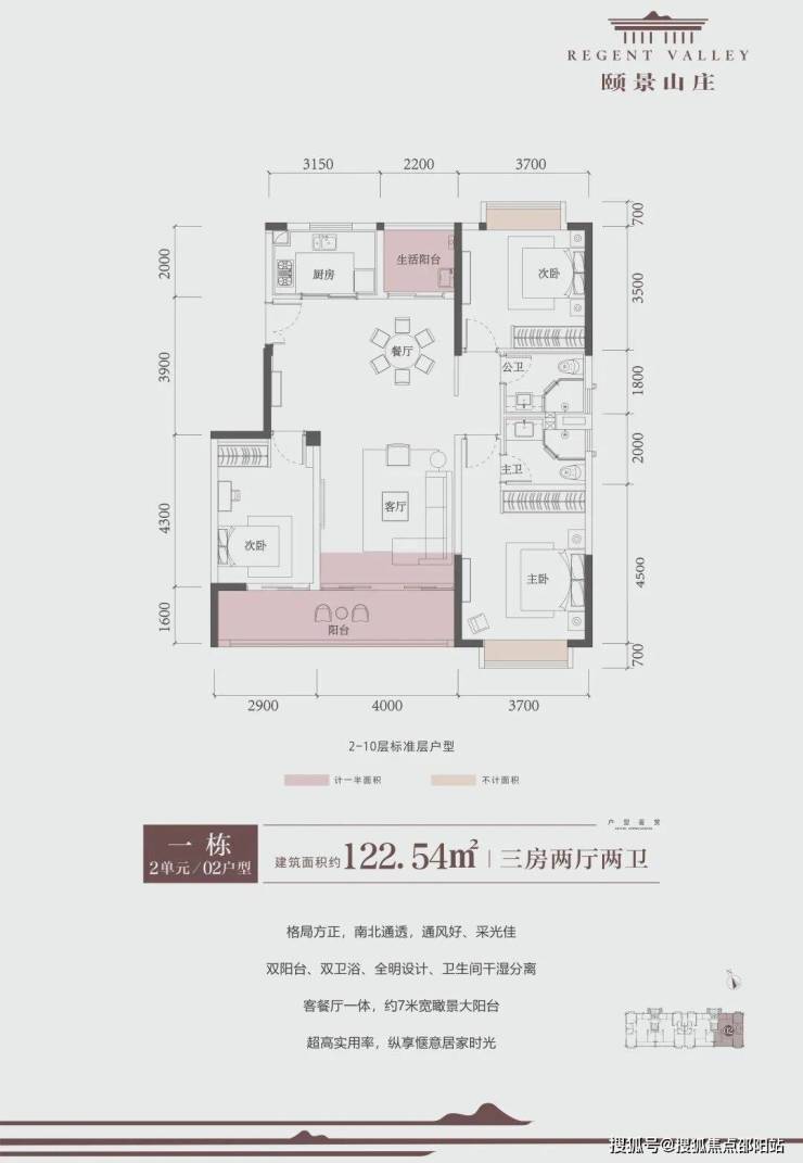 【小高层】——高赠送率、户户南北通透:小高层近95%实用率,公摊少、赠送多,高拓空间,性价比之王,户户南北通透,清风对流;4m客厅开间明朗,三面朝阳设计,延伸生活的幸福尺度;
