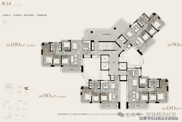 ◎产品配置:北区2T3/3T4塔楼,南区2T2板楼,建面约90-120-140-170-210㎡云幕平层