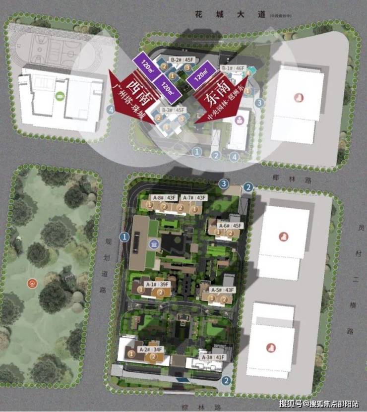 ◎容积率:综合容积率3.33,南地块约3.1,北地块约3.8