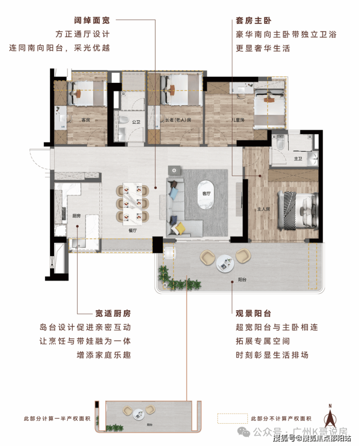 南北通透|主卧 270°飘窗+双飘窗|U 型厨房|南向观江景阳台