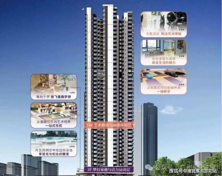 楼盘虽然体量偏小,只有一栋楼,但开发商也花了不少心思,活动空间不足新福港的解决方式就是双架空层做各种主题空间,尽可能的丰富化。
